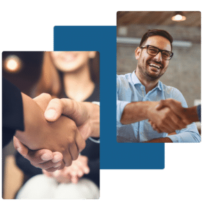 two people shaking hands and smiling